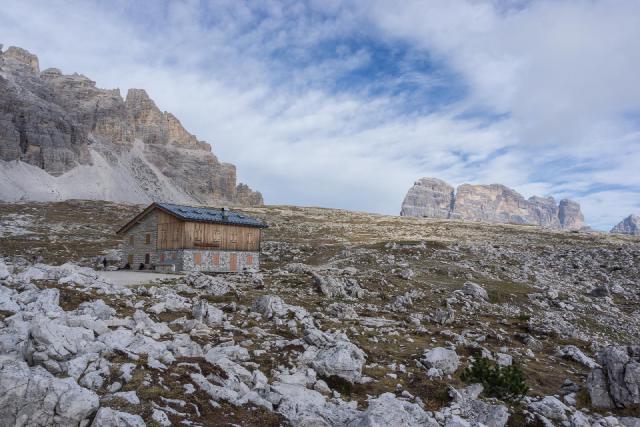 In the end, we set up camp in direct view of the hut—at point 46.63627, 12.30942. It was acceptable. The best spot, in our opinion, was a little further east, on a ledge—a bit more secluded, with an excellent view.